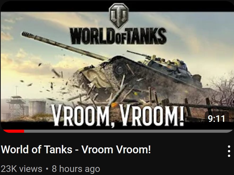 And so, I watch my first tank video. Just for the engine noises. Made me smile real big. That IS a class act.